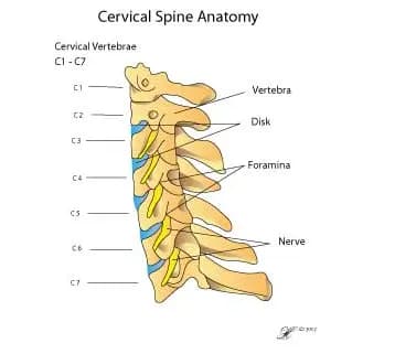 توضيحات الدكتور علي نعمتي العمود الفقري العنقي يتكون من ٧ فقرات (C1 إلى C7) مفصولة بواسطة أقراص بين...